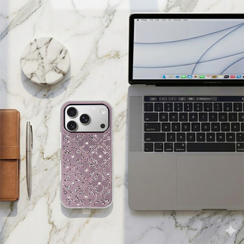 Flower Case – eleganckie etui w stylu glamour, które łączy twardy tylny panel PC z elastycznymi bokami z TPU. Lśniące kryształki na ramce i pleckach nadają telefonowi luksusowy wygląd, a podniesione ranty wokół ekranu i aparatu zwiększają poziom ochrony podczas codziennego użytkowania.