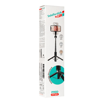 - Uchwyt selfie jest zamocowany na regulowanym tripodzie, który umożliwia dostosowanie wysokości do twoich potrzeb